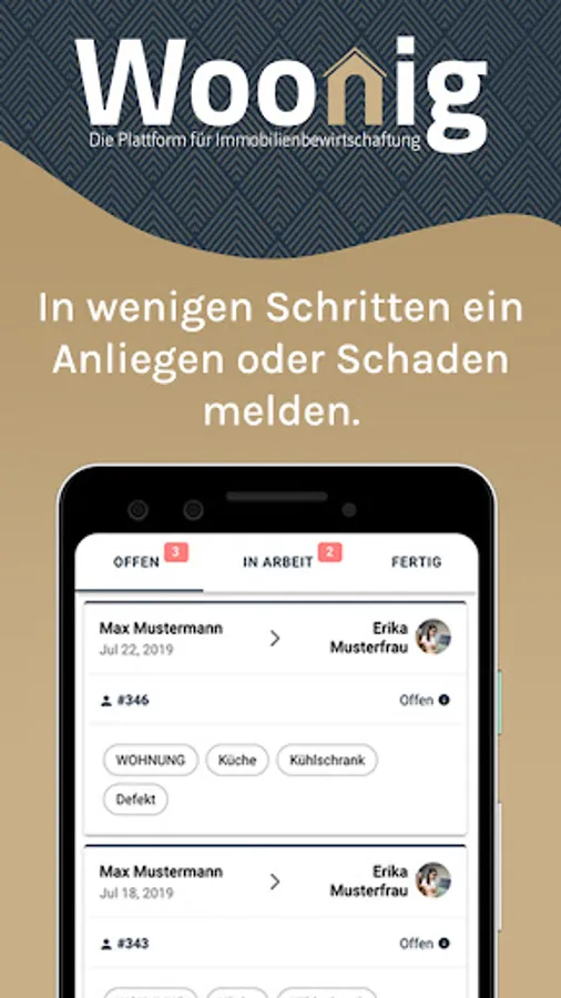 With Woonig, concerns can be recorded around the clock in the simplest way.