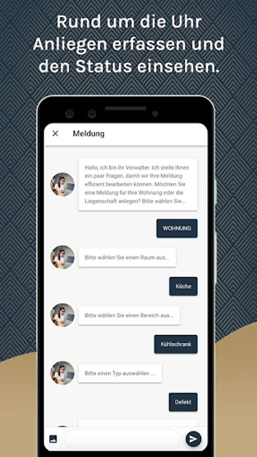 - Simply select the appropriate terms or enter a description, take a photo and the damage or other concerns are already reported.