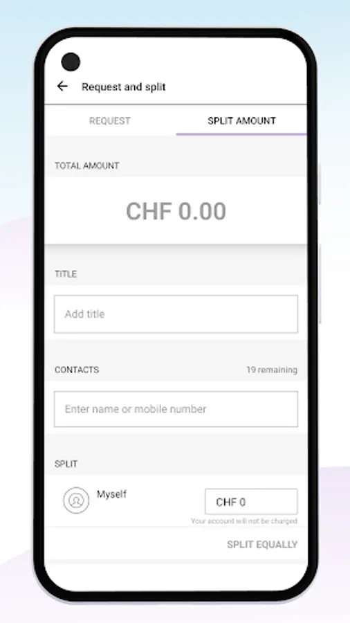 With the “Send” feature, you can send money to your contacts as easy as that. Use the “Request and share” feature to request money or share a bill. Just get the recipients’ mobile phone number and wait for them to download the TWINT application, if they have not already done so.