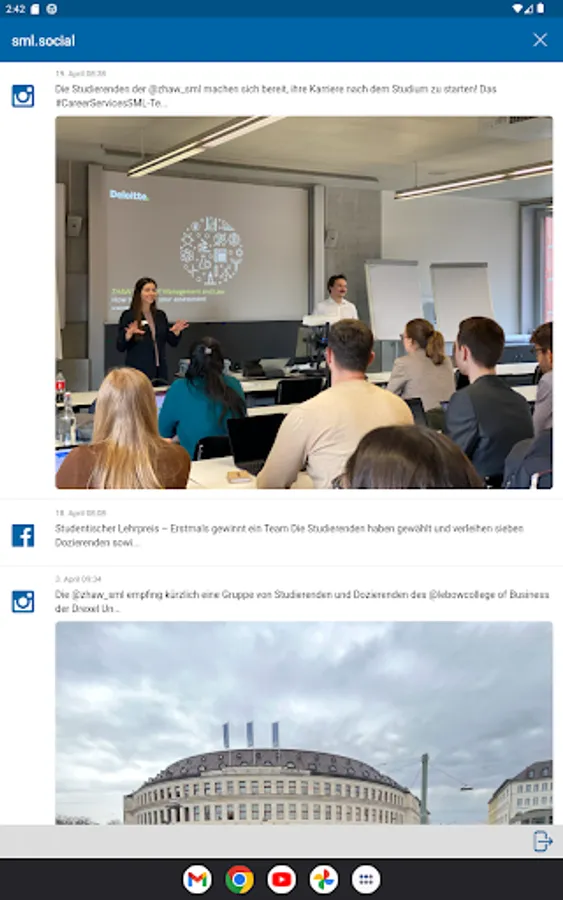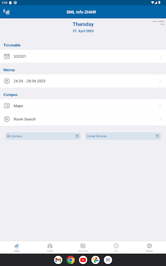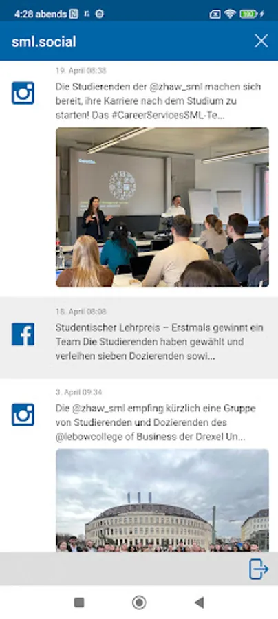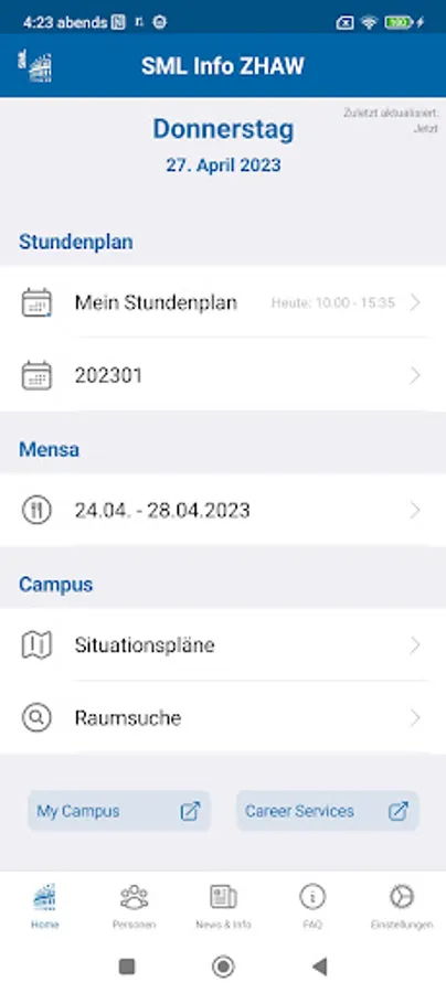 At what time will the next lesson take place? Where is building XY? What's today's menu in the campus restaurant? The ZHAW School of Management and Law (SML) App answers all these questions. It serves as an information portal for students, lecturers and employees.