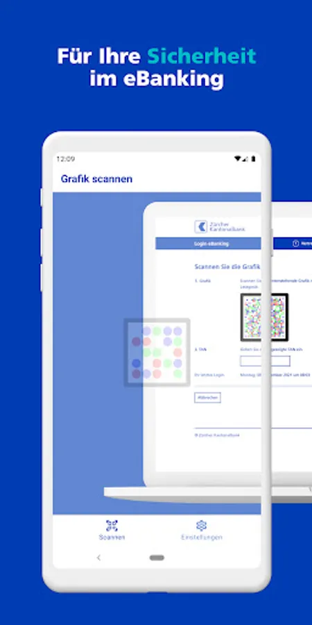 With this security procedure, you scan a colored graphic with your smartphone. You will then be shown a code that you will need in addition to your password for login or transactions.