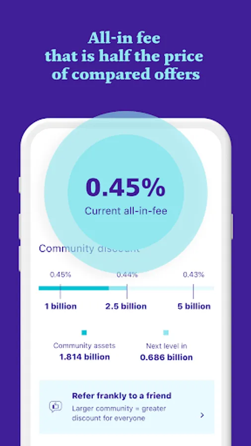 The more pension assets managed by frankly, the cheaper the all-in fee becomes for everyone. As more users join, frankly becomes even more affordable. Planning your private pension like this is fun.