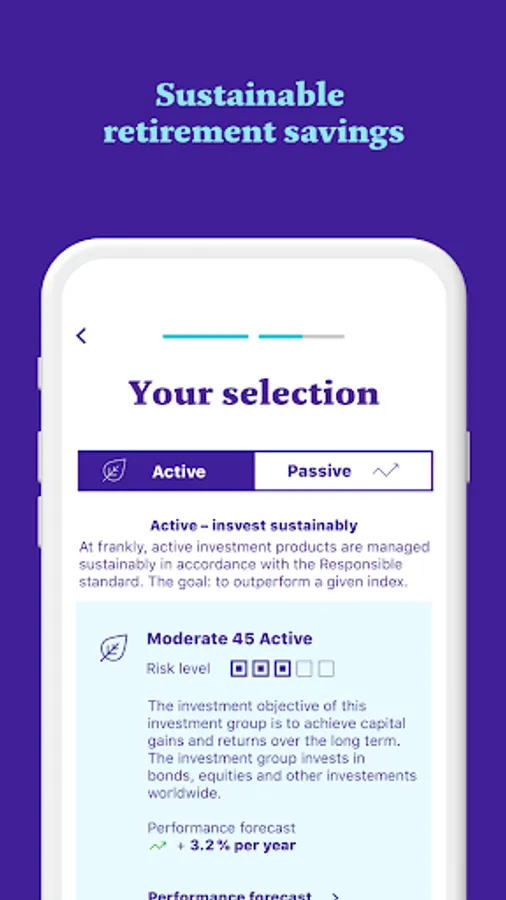 With frankly you can manage your 3a retirement planning in the app and check your performance at any time.