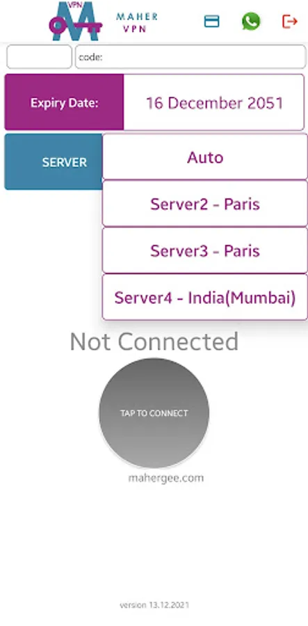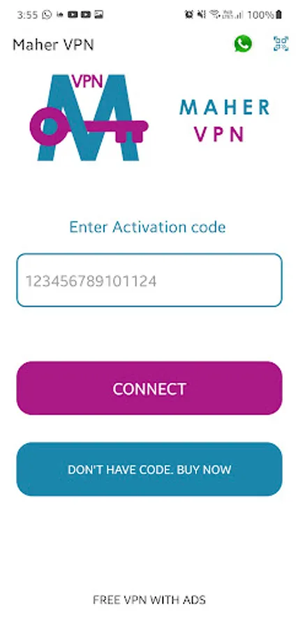 You can buy a Activation code in app after installation. install this app Maher VPN then click on Buy Now button from Login screen and then click your desired package and complete payment from Google Play Store and your vpn will be setup and connect button will appear on you device screen. just press connect button and your vpn will be connected.