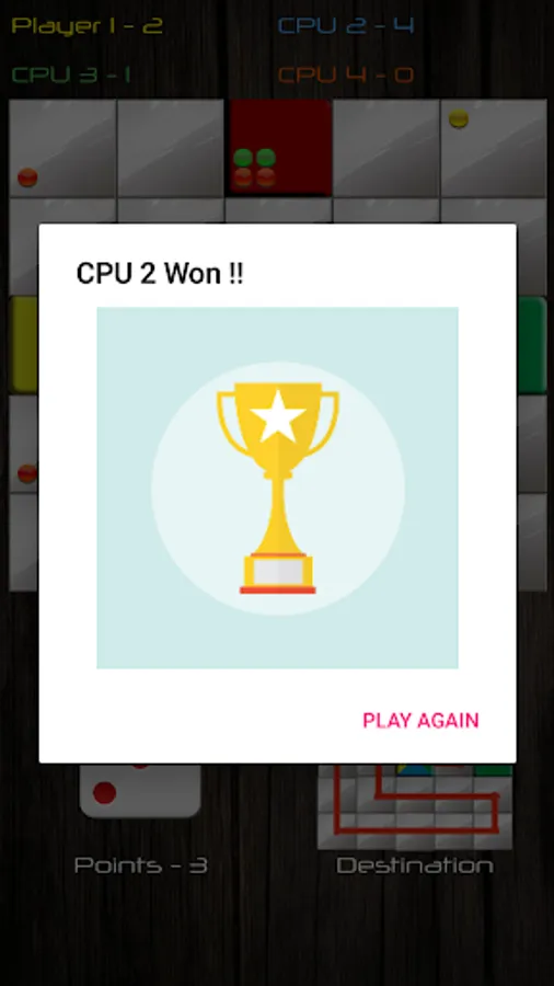 To win the game each player's 4 coins must reach the destination trophy. Each player will have their own path to reach destination.