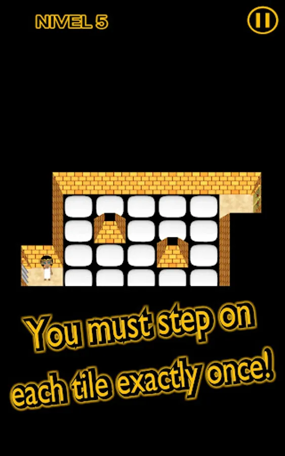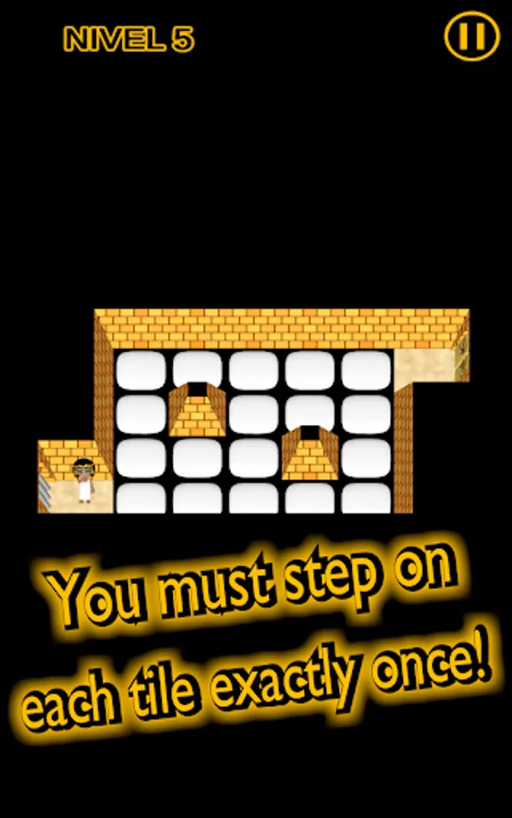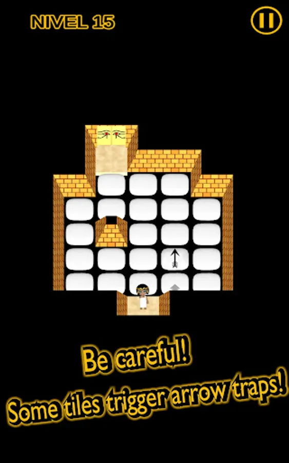 At the start of each level you can think calmly how to solve the puzzle test, but once you move, you cannot remain still... unless you want to fall! Furthermore, the doors inside the Great Pyramid of Giza will open only if you step on all the tiles in each room. And some will activate arrows shot from the walls! The secrets of antiquity are being carefully protected.