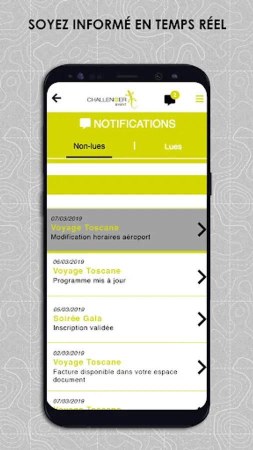 Application to access the various events organized by Challenger Event to which you are invited. You will be able to be kept informed by notification and also to access the different programs and documents of the events.