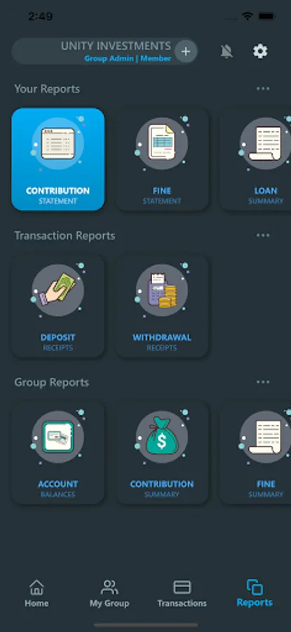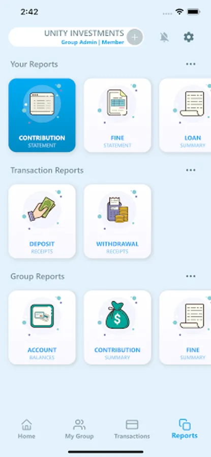 Chamasoft generates the following reports; Member Statements, Loan Summaries, Expense Summary and Transaction Statements.