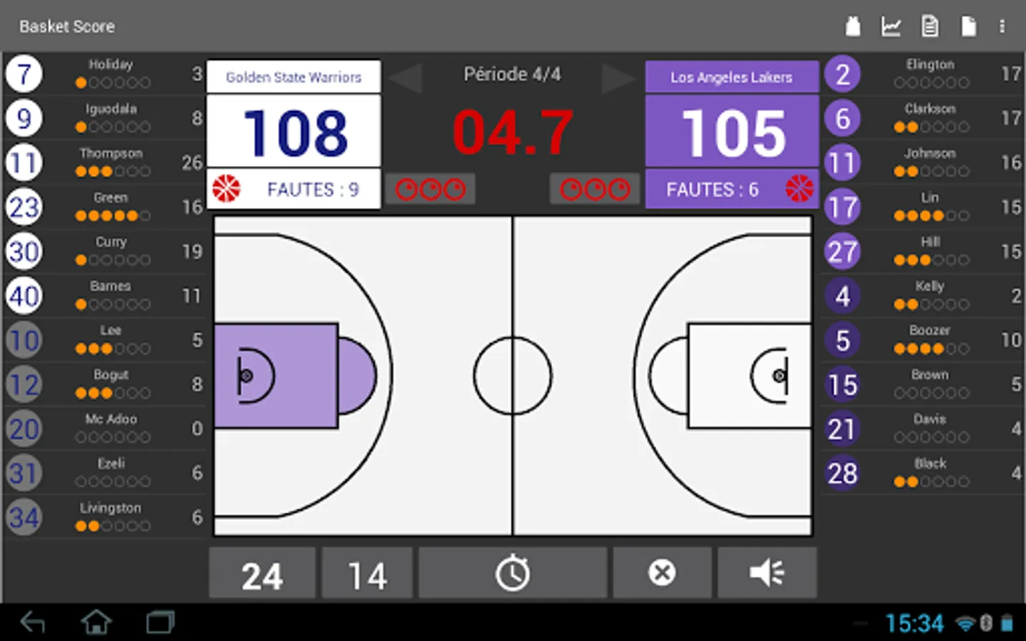 Use your smartphone or tablet as a professional scoreboard for basketball!