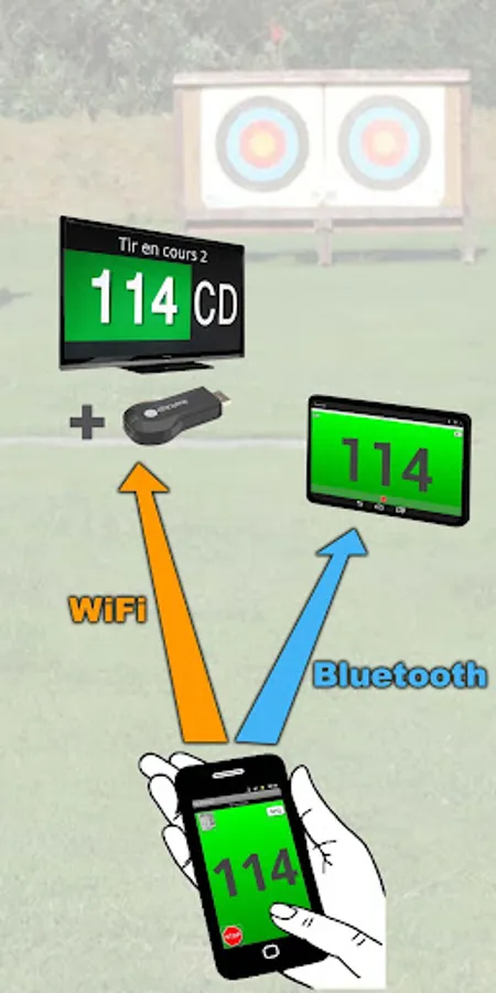 Google Cast ™ Ready: Displays the timer on a TV screen via Chromecast. You can use two screen, each with a key Chromecast provided you use 2 phone or tablet with Bluetooth link.