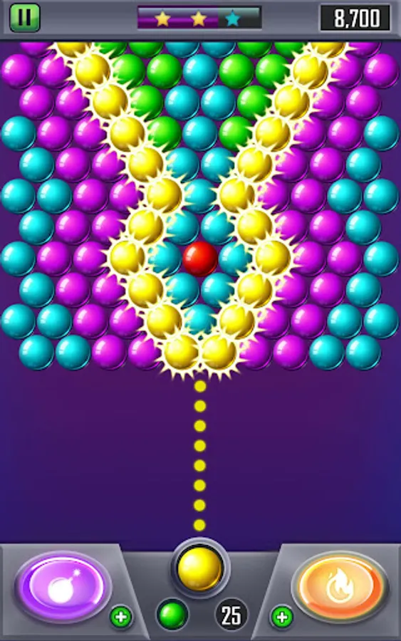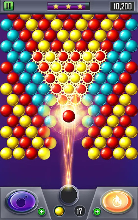 + Bomb- Blast 10 balls or more to get a bomb that will take out surrounding bubbles