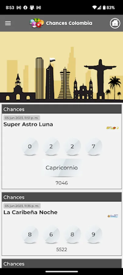 Chances Colombia App offers results and statistics of all the chances draws in Colombia: