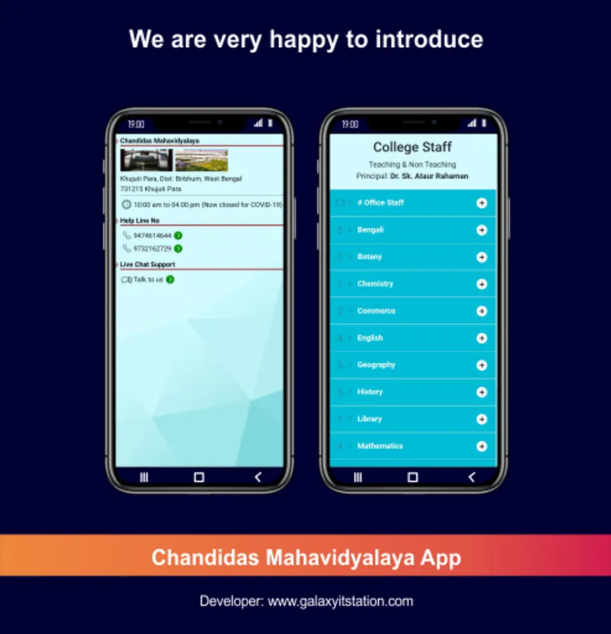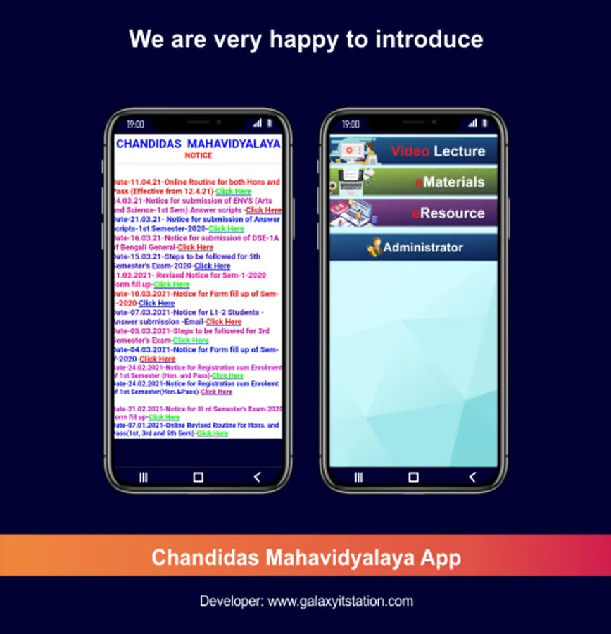 Chandidas Mahavidyalaya app started from this year [ 2020 ]. This app for use of Education purposes.