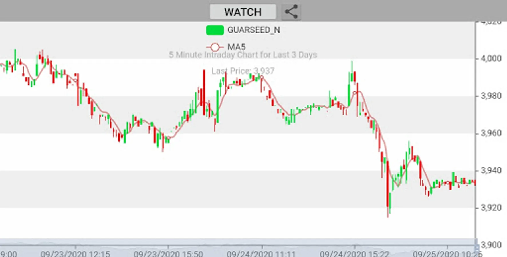 Intraday NCDEX Chart (Candlestick).