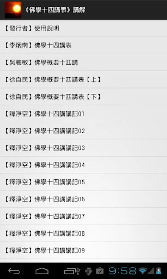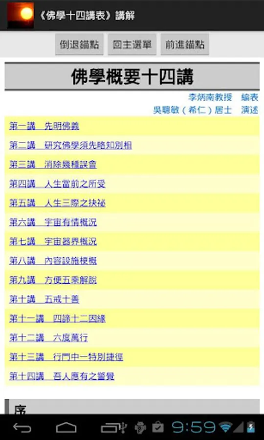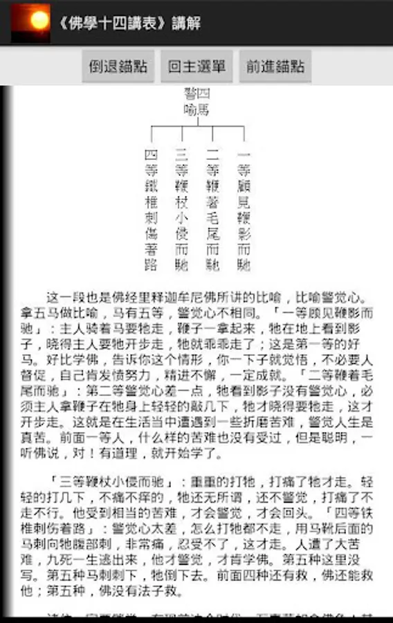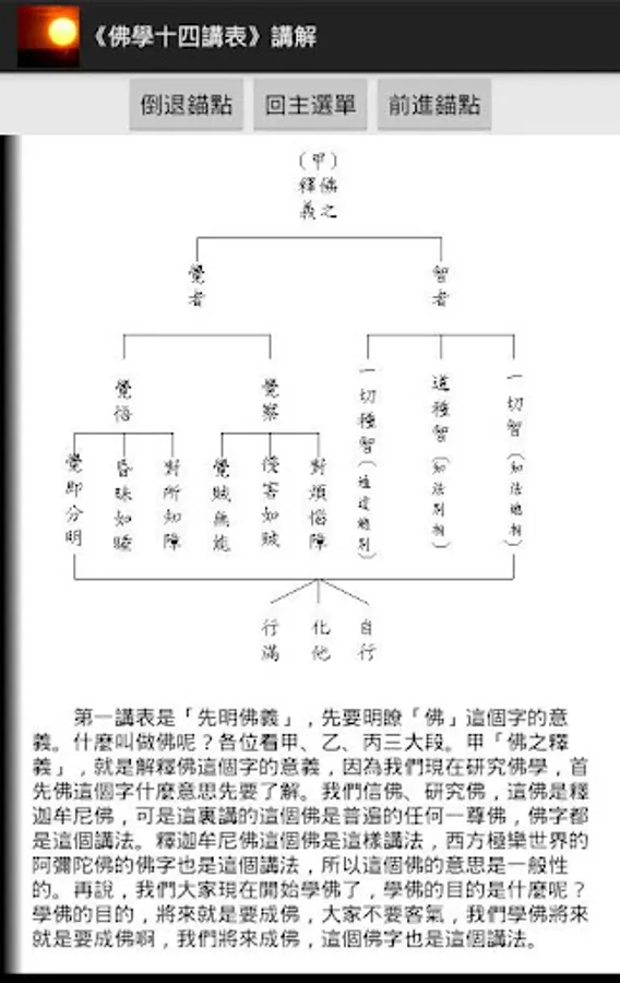 剛入門的佛弟子可以《佛學十四講表》的體系架構,打好紮實的佛學基礎,以作為日後進德修業的參考依據。