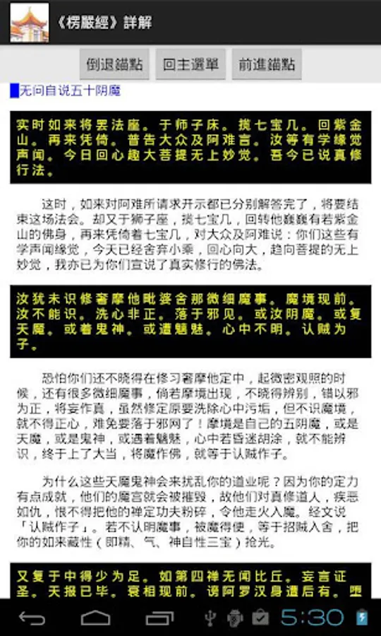 三:可以設定書籤,快速跳躍至上次閱讀的位置。