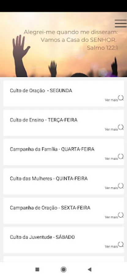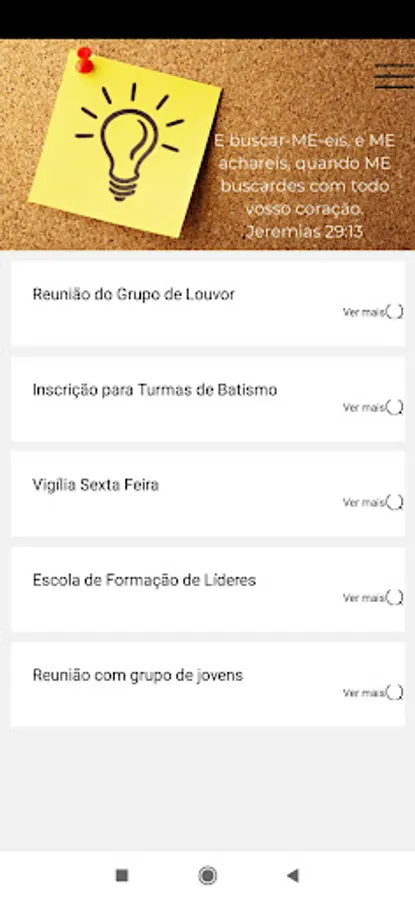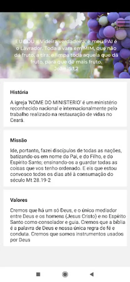 The app can have your images and videos customized for your church or ministry. The intent is to provide a service with affordable costs for churches, with low complexity for maintenance and customization, so that advanced technical knowledge is not required to operate it.