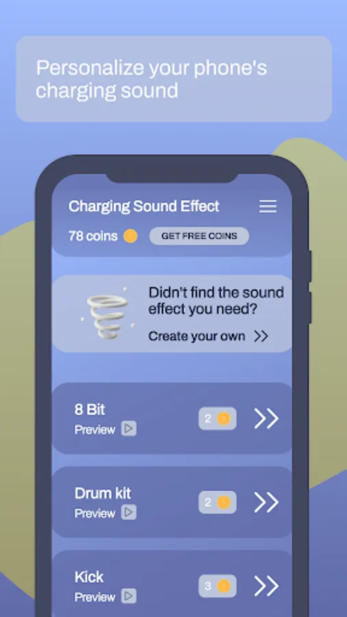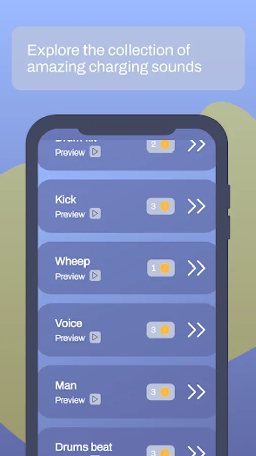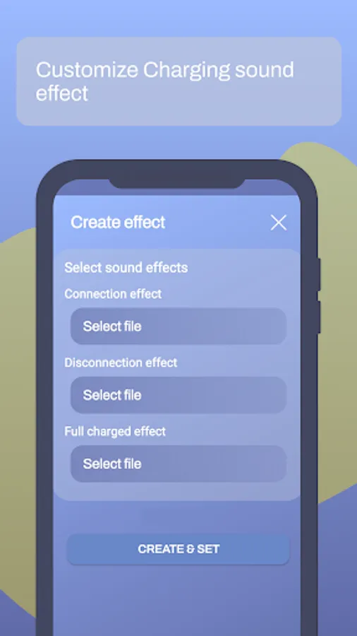If you don't find a suitable sound from our collection, you can create your own battery sound effect by uploading your sounds to the app. Set your custom charging connection sound, charging disconnect sound, and full charge sound.