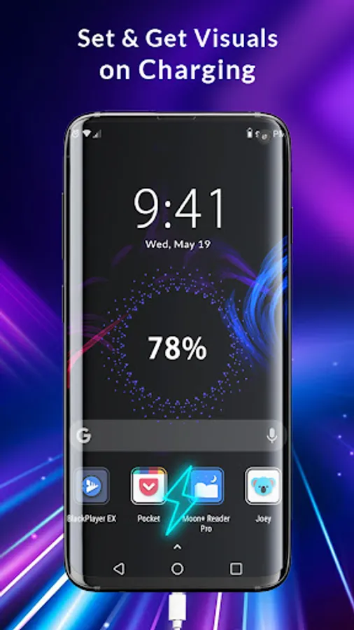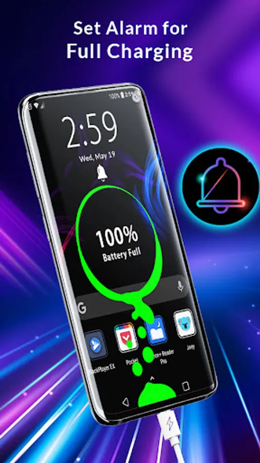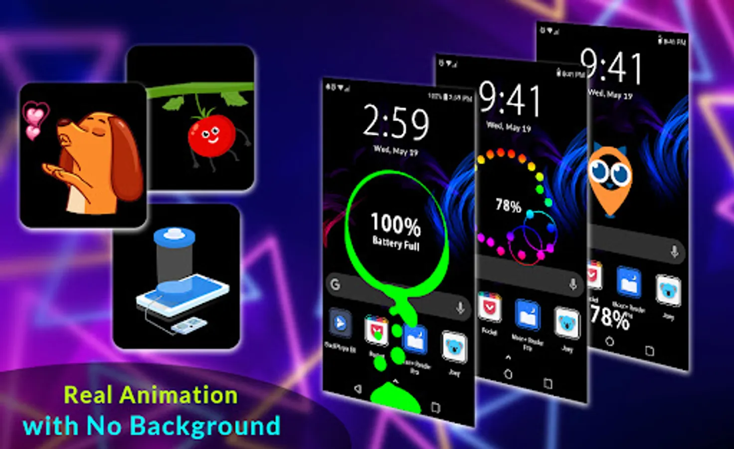 Neon Color Charging animation app find out precise battery health, battery temperature, voltage, charging type, battery capacity and how to customize your battery charging animation full screen. Animated battery charging is a complete and precise battery charging tool. One of the best feature of charging play animation app is, Free Cool Neon Effect Battery animation will gives you alarm alerts when your battery is fully charged. Get attractive Animated Battery Charging Animation Screens and real cool animation graphics for better charging. You can run these animation in background of your mobile its doesnβt need any additional permission its avoid your phone from a humble look.