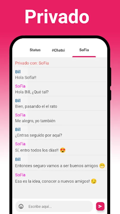 Are you looking to meet people, friends or the love of your life? Enter our chat and meet new people or maybe your better half. Find your ideal partner, make contacts and friends on Chatsi. Flirting and meeting women and men is very easy in our chat rooms. Many men and women are looking to meet their future partner or girlfriend. A chat where you can create your profile with a photo. Thousands of users visit our app every day, we invite you to be a member of our fantastic community.