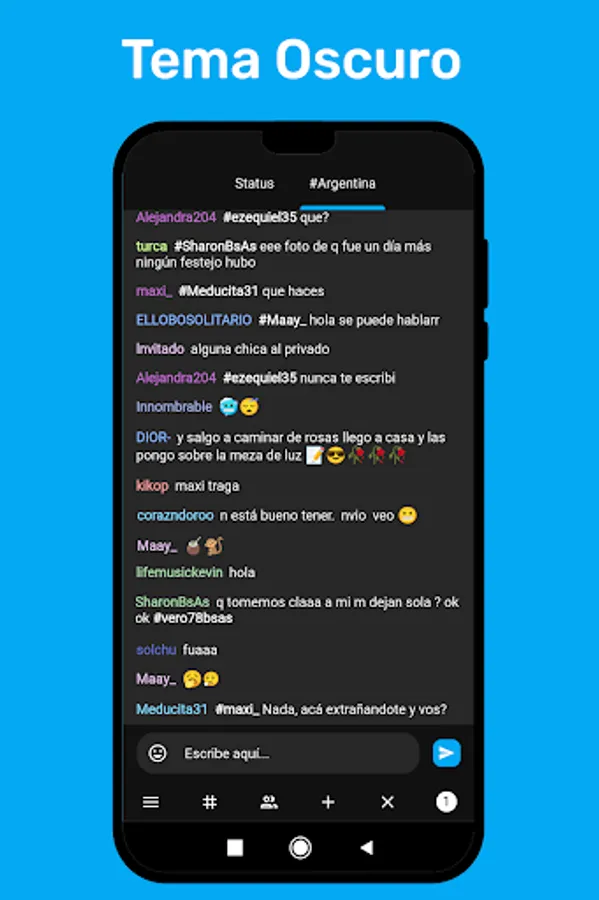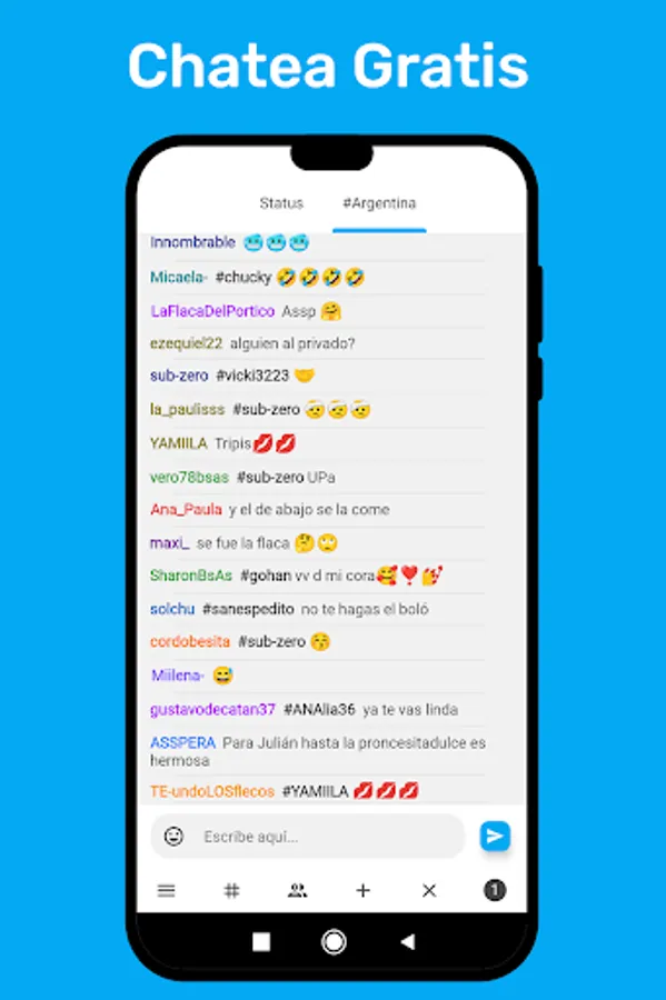 Chat for free in Argentine chat with photos and profiles. Meet thousands of Argentines and Argentines in Chat Argentina. Now the people of Argentina have their site on Android, making friends, meeting girls and boys is easier than ever with our application. All the provinces and cities of Argentina present!