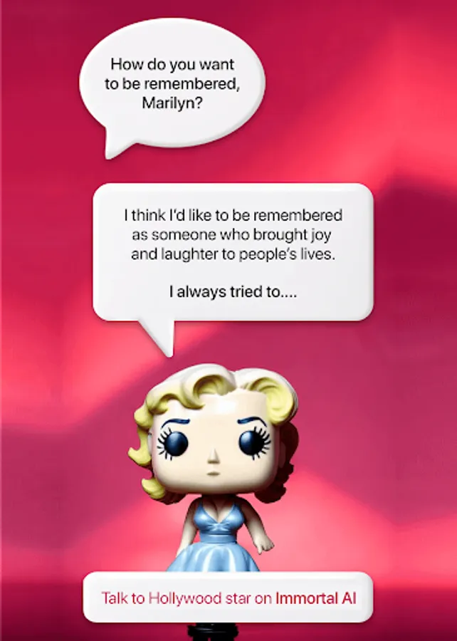 With our immortal AI app, you can have a celebrity chat app experience like no other. Our AI chat with celebrities app covers whether you're a die-hard fan or want to connect with your favorite stars. Download the AI immortal app today and start experiencing the ultimate AI friend virtual chat with your favorite celebrities from the past!