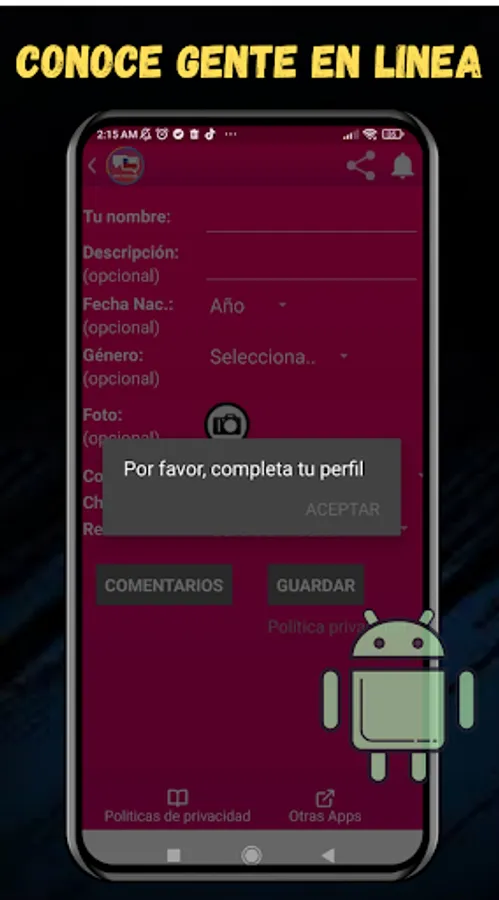 Fomenta las relaciones sanas y con respeto y educación al resto de los miembros de la comunidad, También los perfiles, textos y fotos son moderados por nuestro equipo.