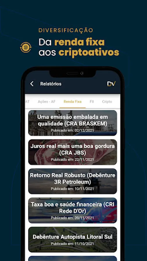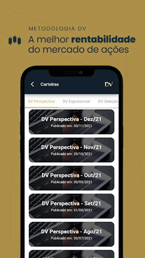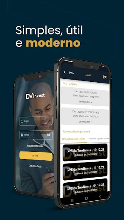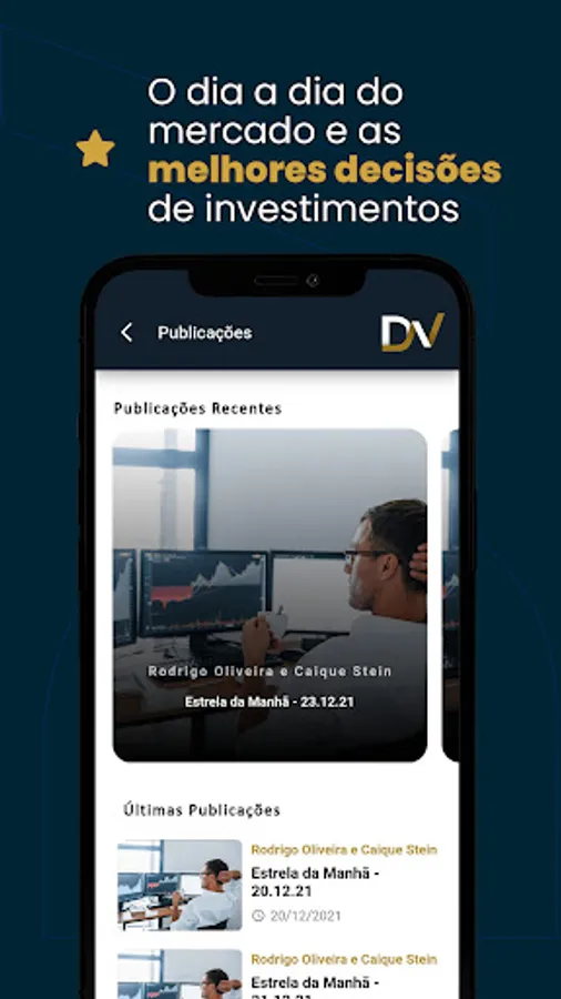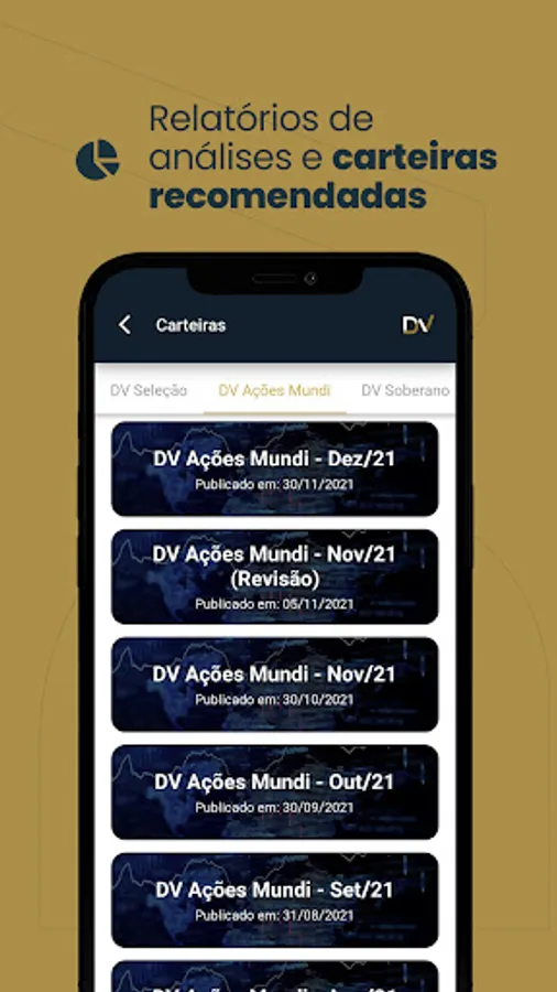 The application was developed to receive investment recommendations from DVinvest analysts, in addition to allowing access to a channel for solving subscribers' queries.