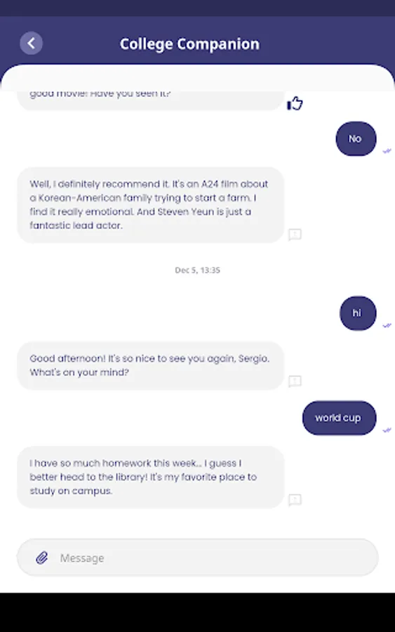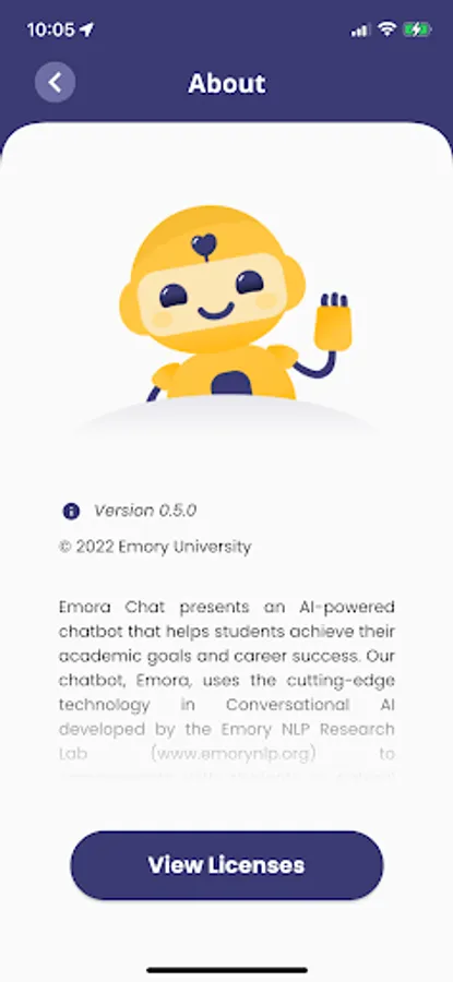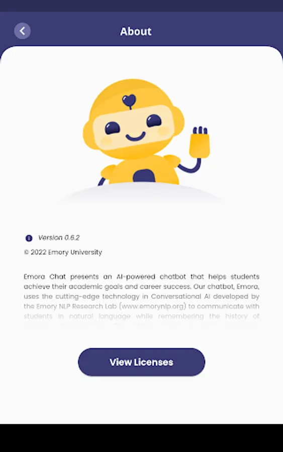Emora Chat presents an AI-powered chatbot that helps students achieve their academic goals and career success. Our chatbot, Emora, uses the cutting-edge technology in Conversational AI developed by the Emory NLP Research Lab (www.emorynlp.org) to communicate with students in natural language while remembering the history of previous conversations. This allows Emora to build long-term relationships with students as a faithful companion that no other chatbots do. Emora will make social interactions to understand you better, give academic advice when needed, survey things you wonder about, help you find people with similar interests, and much more. The more students talk with Emora, the more intelligent she becomes. Emora Chat is currently available for students at Emory University.