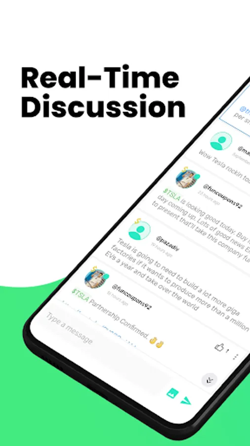 - Real-Time Discussion: Chat with like minded investors across 10,000+ dedicated stock channels