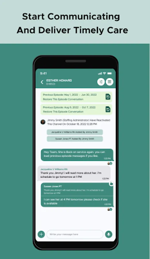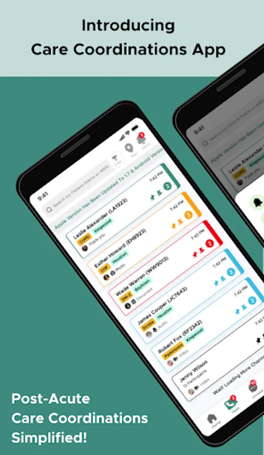 Care Coordinations is HIPAA secured & AI-powered communication app for Home Health & Hospice Care Organizations. Our simple, intuitive, and proprietary interface allows front and backend team members to share secure messages, images, and documents in real-time. We have designed our platform to address all patients' and clinicians' needs and preferences in real-time and communicated to the care team to provide safe, appropriate, and effective care to the patient. In addition, we strive to make care coordination more engaging and automated where clinicians can communicate faster and spend more time with their patients.