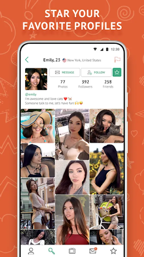 🤩 Browse tons of profiles. Make sure to star those you like, and they will wait for you in the favorites section!