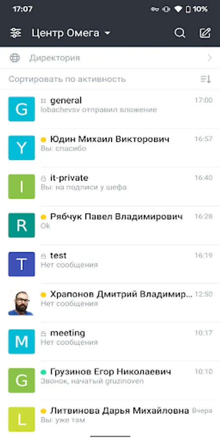 This is a corporate messenger for Omega Center employees. It allows users to communicate securely in real time on all devices on the Internet, on their desktop or on mobile devices. Users also receive free audio-video conferencing, guest access, screen and file sharing , a single user base, end-to-end encryption, an unlimited number of messages in channels, search for messages and files.