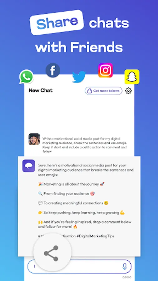 Switch to voice messaging with ease when you need a break from typing. 2ndBrain supports voice messages, allowing you to communicate more efficiently and access your AI ChatBot's features through speech. Speak your mind, and let the app's powerful voice recognition capabilities take care of the rest.