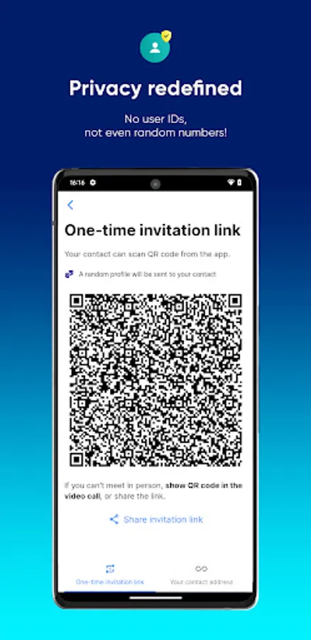 - complete protection against spam and abuse: as you have no identifier on SimpleX platform, you cannot be contacted unless you share a one-time invitation link or an optional temporary user address.