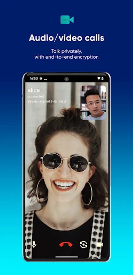 You can connect to anybody you know via link or scan QR code (in the video call or in person) and start sending messages instantly - no emails, phone numbers or passwords needed.