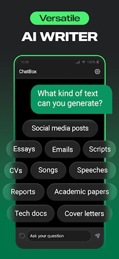 Willing to explore all my capabilities and simplify your daily tasks to have more free time? Download ChatBox, your personal AI chat assistant, and open the world of unlimited AI capabilities here and now!