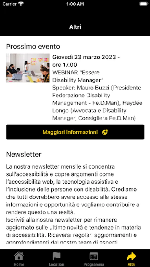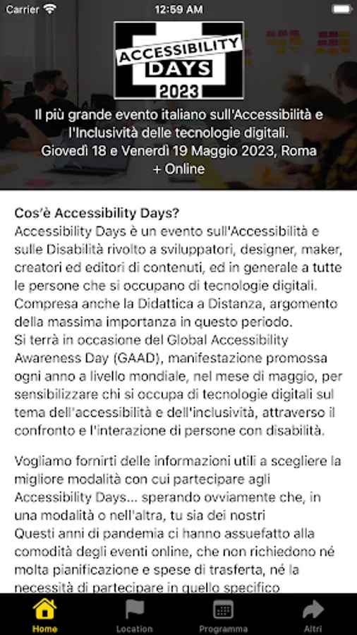The Accessibility Days app provides online visitors and attendees with the latest information about the program and activities.