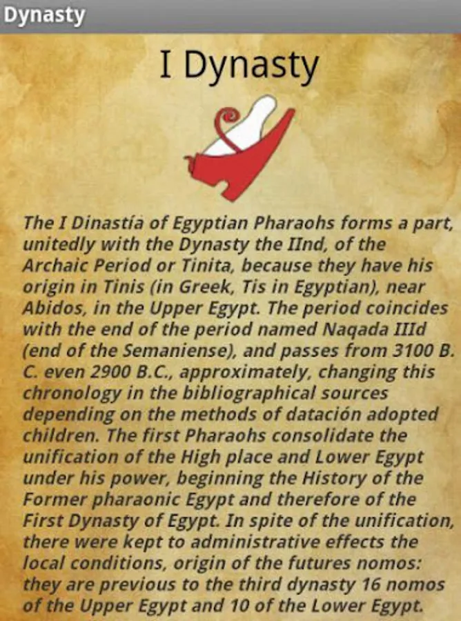 Description of the first XIVth Egyptian dynasties, as well as the 2 proto-dynasties initial of the High place and Lower Egypt.