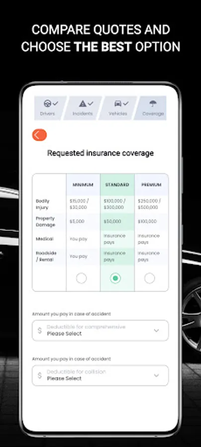 Just tap "Start Now", enter your basic information, and we'll match you with the optimal insurance offer based on your individual circumstances.