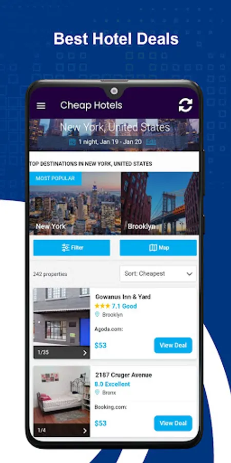 Unlock exclusive deals with rewards programs from Best Western, Accor, Nordic Choice, FourSeasons, Hilton Honors, Holiday Inn, Hyatt, IHG, Marriott Bonvoy, Ritz Carlton, Sheraton, Wyndham, and more. Compare with Agoda, Trivago, Hotels.com, Priceline to find cheap rates and last-minute rooms. Our app simplifies global reservations, offering a wide range of accommodations. Select offers, book cheap rooms, vacation rentals and we'll direct you to the chosen service.