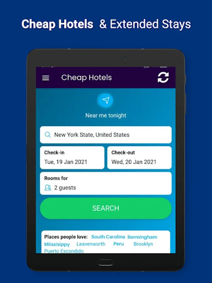 Cheap hotels - Extended stay hotel deals app compare prices & find hotel deals to get weekly hotel deals-extended, cheap extended stay hotels & last minute hotel tonight, and many more. Cheap hotel finder app helps compare prices of online hotel booking providers like extended stay america (esa), hoteltonight, hotwire, econolodge, sublet, americ inn, motels, hotelplanner, laterooms, motelnow, my6, dayuse, rentmystory, homestay, nestpick, etc. Compare hotel rates, find extended stay cheap hotels , and book hotel now to get hotel quickly.