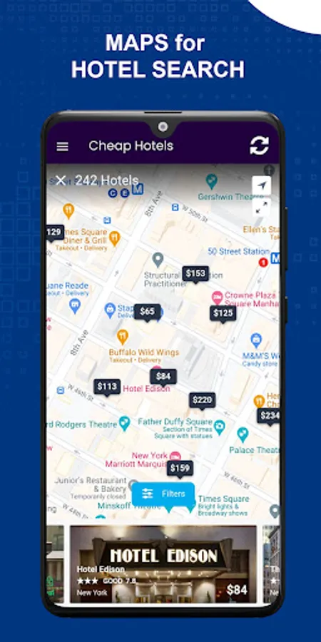 Use our hotel finder app to discover a variety of accommodations in your vicinity. From cheap hotels and extended weekly motels to luxury resorts and monthly motels, we offer options for every traveler. Compare rates for room bookings, vacation rentals, holiday homes, and more. Featured providers include HotelsTonight, and options for budget to luxury stays.