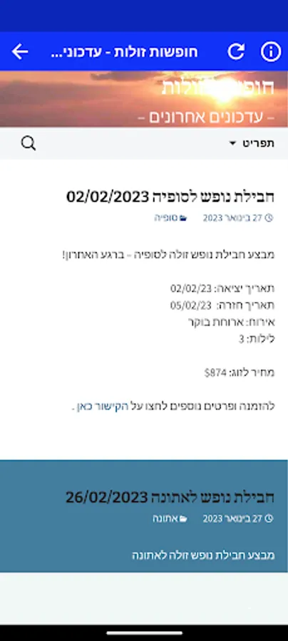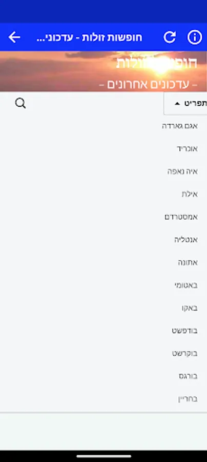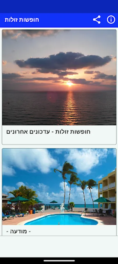 Cheap holidays app brings you a wide selection of free cheap holidays abroad and vacations in Israel. App you can watch the updates of cheap holidays. (Prices vacation package includes flight + hotel).