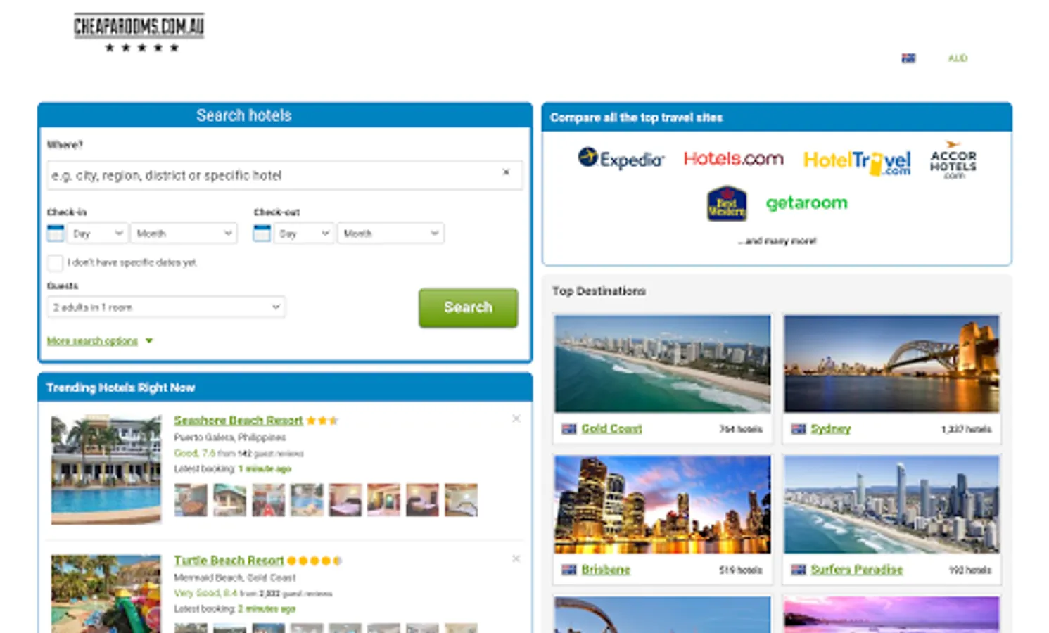Easily find, compare and book the cheapest price on thousands of hotels worldwide. Instantly compare rates from more than 30 online travel websites such as Travelocity.com, Hotels.com, Expedia.com, LastMinute.com (and many more) all with one easy search...