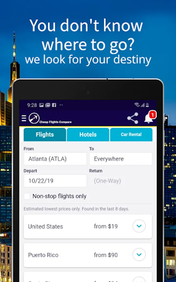 Are you in search for low cost, inexpensive cheap flight tickets? Do you want to have the ability to compare airfare tickets airline options and always get the cheapest flight tickets? Well, Cheap Flights Compare app from New York, is the perfect travel booking app for you! It will forever change the way you book flights and hotels!