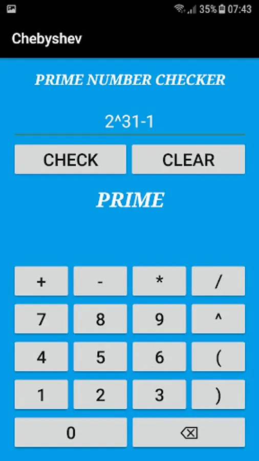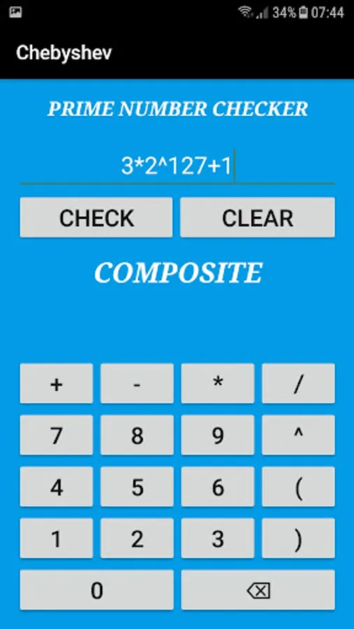 This app can check the primality of numbers with hundreds of digits in a few seconds.You can use arithmetic operators +,-,*,/,^ and parentheses to enter a number of a special form.