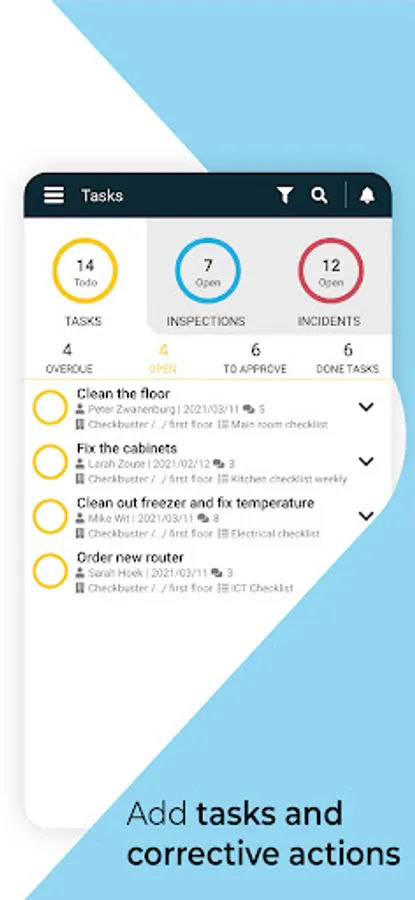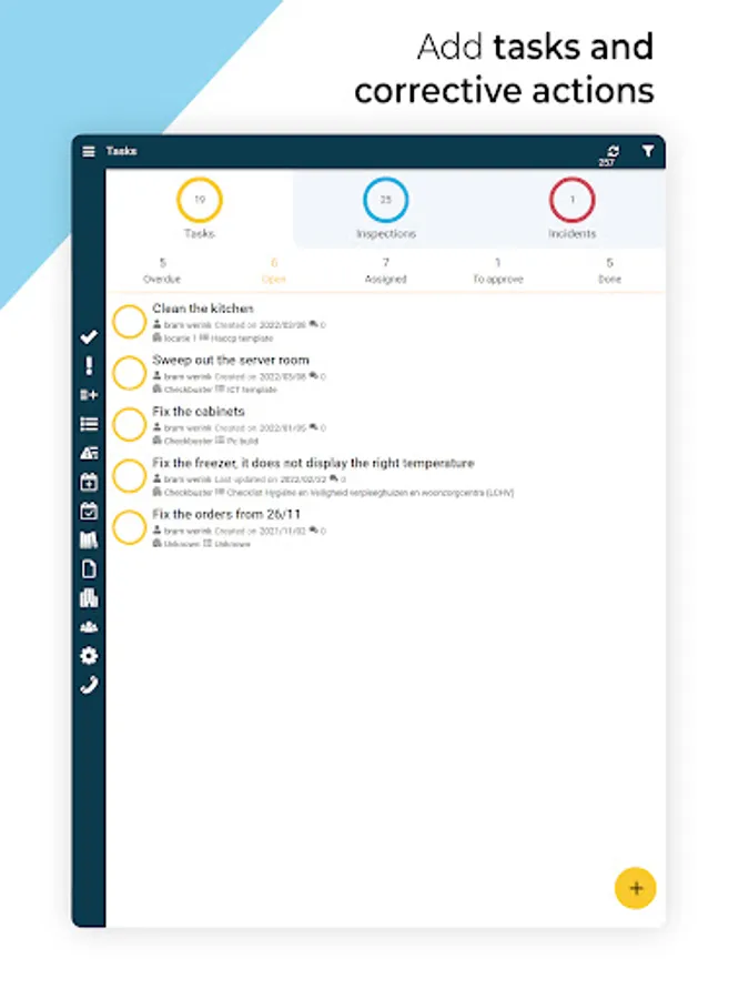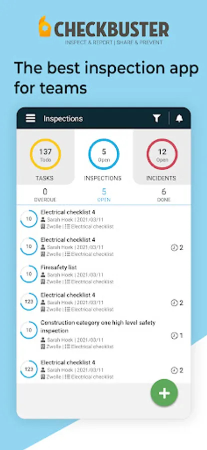 Invite your team members and work simultaneously inspections with your team. Checkbuster streamlines your quality & safety process. Start now!