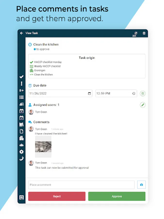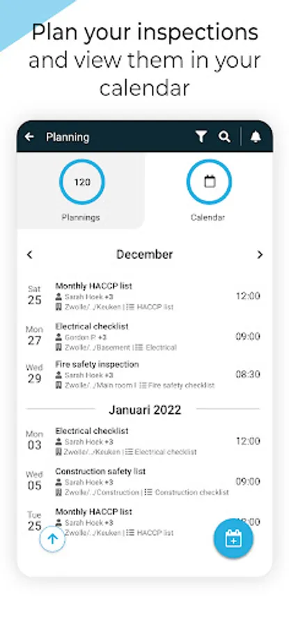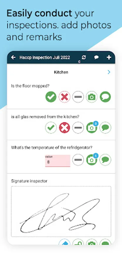 Manage negative inspection results and reports and command the PDCA-circle. From Food Safety/HACCP to ISO 9001, from OSHAS to Fire Safety and construction checklists. Thanks to the complete and secure cloud backup, you and your colleagues can always view reports from any location and give them the desired follow up.