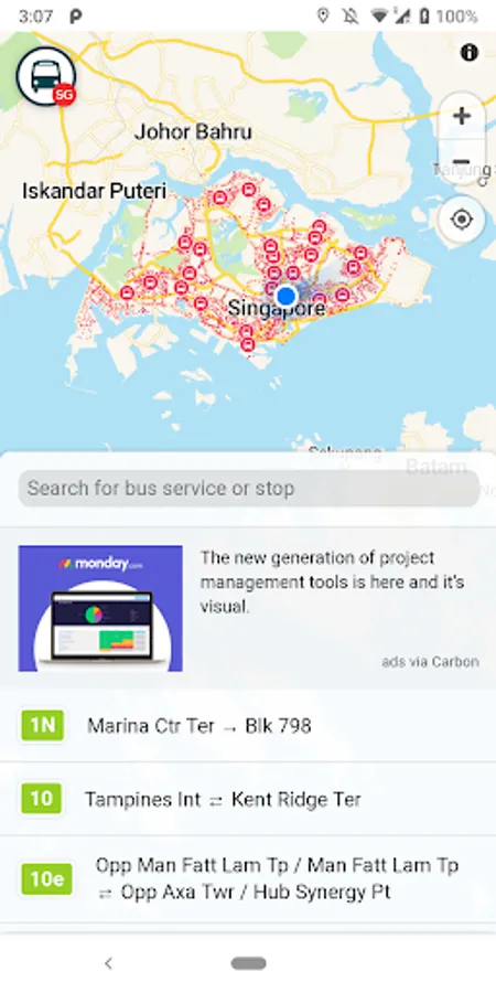 Explore bus stops and routes on the map for all bus services in Singapore, with realtime bus arrival times and per-bus-stop passing routes overview.